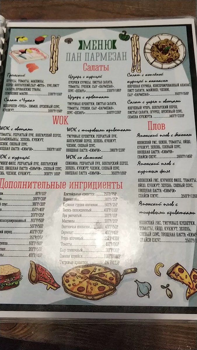 Welcome to Pan Parmezan, a delightful cafe and pizza restaurant located at Ulitsa Gagarina, 2 in Vyatskiye Polyany, Kirov Oblast. This charming spot has been a go-to destination for locals craving delicious pizzas and comforting dishes for over two years. Guests praise the swift service and inviting atmosphere, perfect for family gatherings or intimate evenings with friends.
